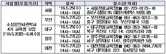 (서울=포커스뉴스) 중소기업청(이하 중기청)은 소상공인사관학교 4기 교육생을 다음달 8일까지 모집한다고 22일 밝혔다.