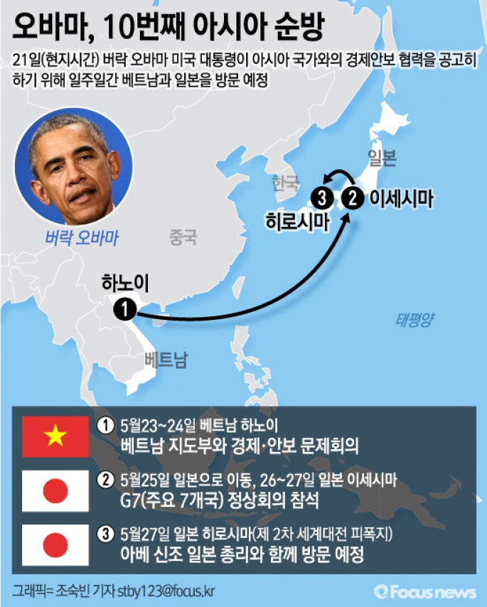특히 27일에는 제2차 세계대전 피폭지인 일본 히로시마 방문이 예정돼있어, 아베 신조 일본 총리와 함께 히로시마를 찾을 것으로 알려졌다.