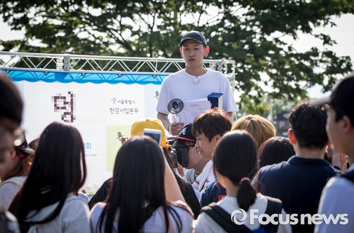 (서울=포커스뉴스) 22일 오후 서울 용산구 이촌 한강공원에서 열린 '한강 멍때리기 대회'에 참가해 1등을 수상한 래퍼 크러쉬가 멍한 표정으로 상장과 트로피를 들고 있다.