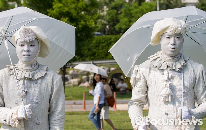 (서울=포커스뉴스) 22일 오후 서울 용산구 이촌 한강공원에서 열린 '한강 멍때리기 대회'에서 참가자들이 멍하게 앉아 있다.