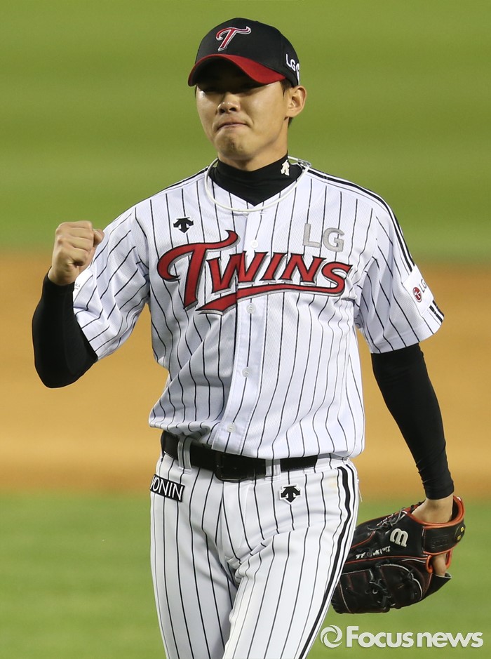 (서울=포커스뉴스) 22일 서울 잠실구장에서 열린 2016 프로야구 넥센-LG 경기에서 LG 마무리 투수 임정우가 넥센 마지막 타자 서건창을 삼진 아웃으로 잡고 주먹을 불끈 쥐고 있다.