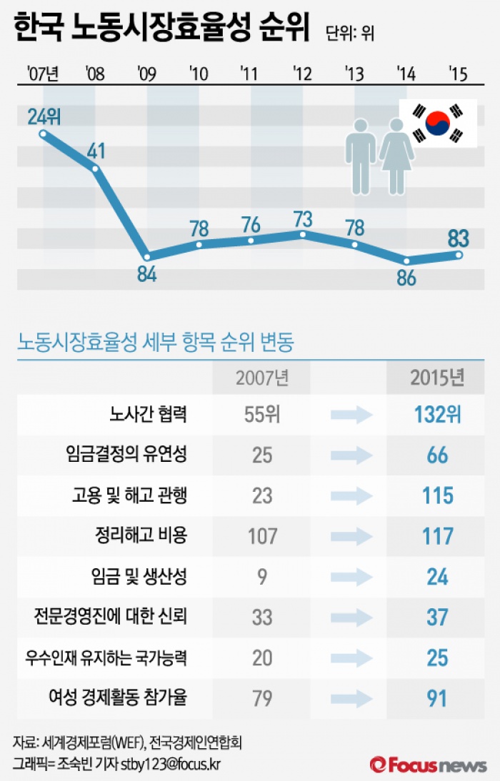 | △ [그래픽] 한국 노동시장효율성 순위 |