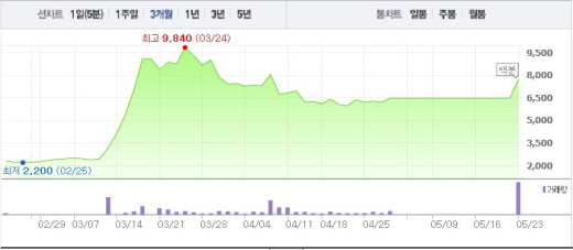 와이제이엠게임즈는 영백씨엠이 같은달 25일 상호를 변경한 회사로 사업목적에 온라인, 모바일 게임 개발 및 퍼블리싱, VR, AI(인공지능) 관련 사업 등을 추가한 바 있다.주가흐름<사진출처=네이버 캡쳐>