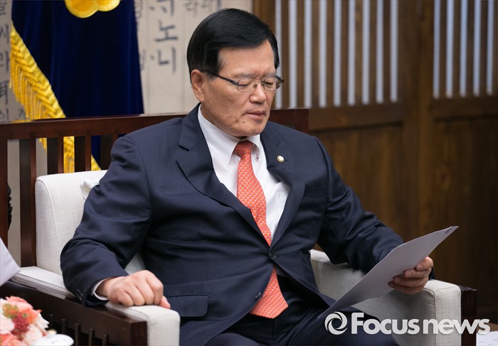 (서울=포커스뉴스) 싱크탱크 '새 한국의 비전'을 준비 중인 정의화 국회의장이 23일 오후 서울 여의도 국회에서 류치바오 중국 공산당 중앙선전부장을 접견, 면담 중 자료를 보고 있다. 정 의장은 지난 19일 본회의를 마친 뒤 유승민 무소속 의원과 독대한 것으로 알려져 관심을 모으고 있다.