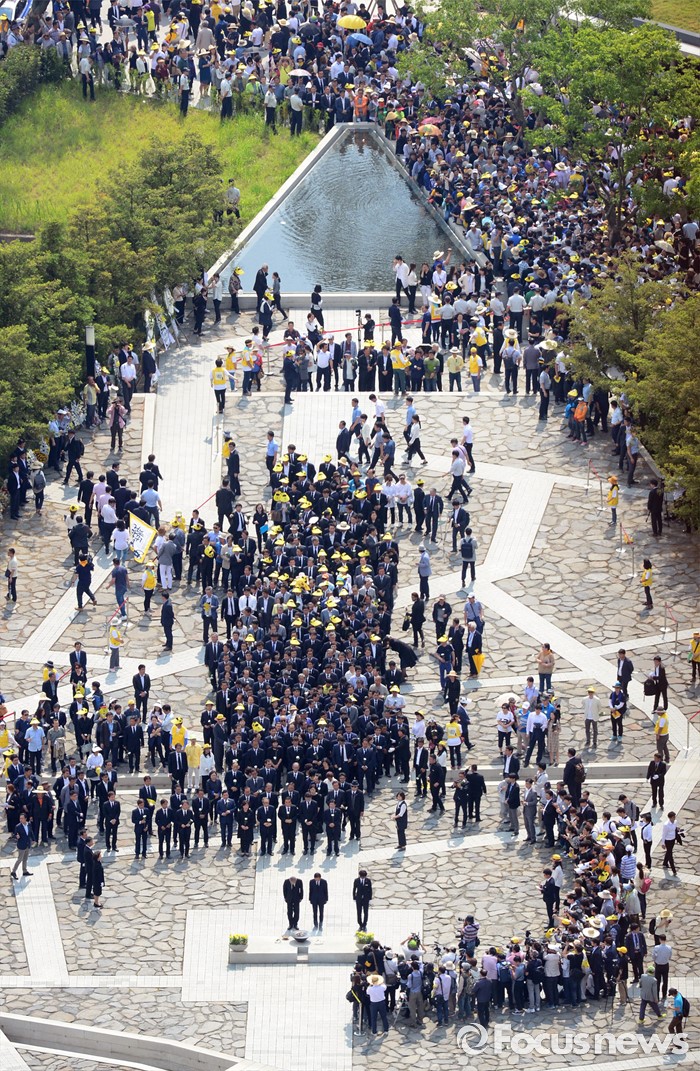 (김해=포커스뉴스) 23일 오후 경남 김해 봉하마을에서 엄수된 故 노무현 전 대통령 서거 7주기 추도식을 마친 뒤 김종인 더불어민주당 비대위 대표, 우상호 원내대표 등이 헌화를 하고 있다.