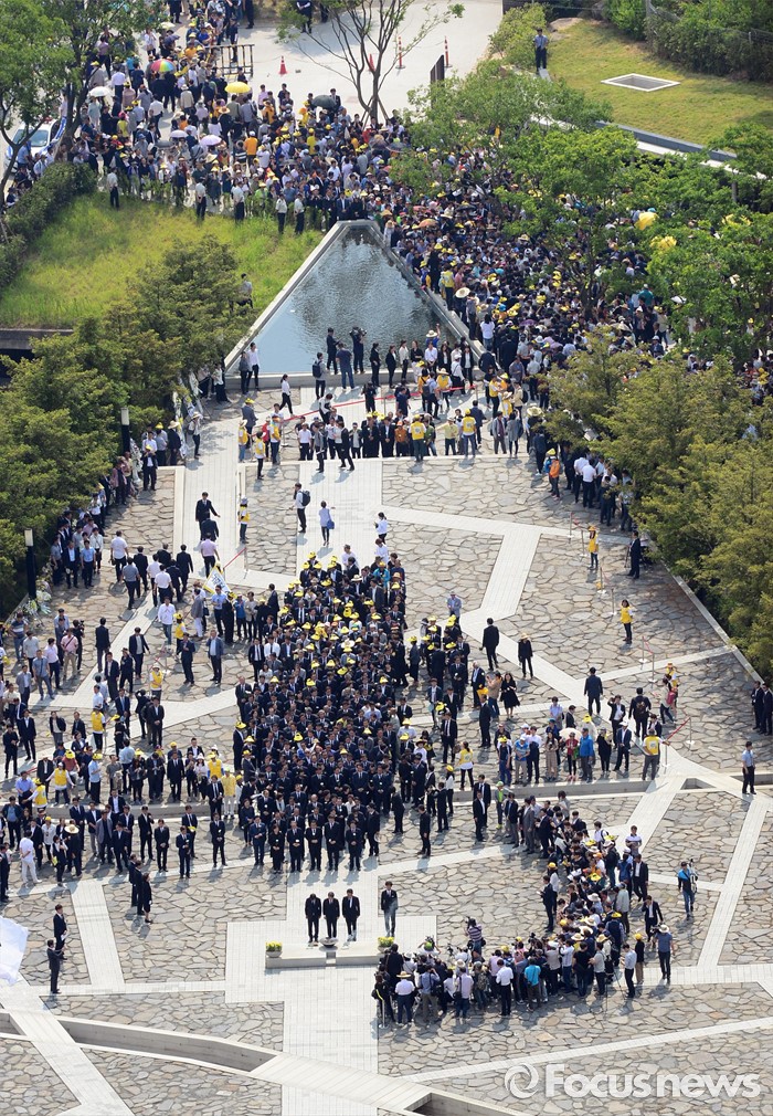 (김해=포커스뉴스) 23일 오후 경남 김해 봉하마을에서 엄수된 故 노무현 전 대통령 서거 7주기 추도식을 마친 뒤 안철수 국민의당 상임공동대표, 천정배 공동대표, 박지원 원내대표 등이 헌화를 하고 있다.