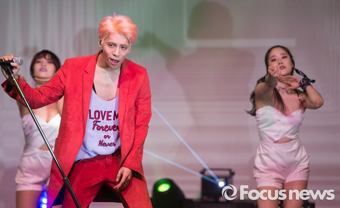 (서울=포커스뉴스) 23일 오후 서울 강남구 플래툰 쿤스트할레에서 가수 종현이정규 1집 앨범 '좋아'를 발표하고 무대를 선보이고 있다.