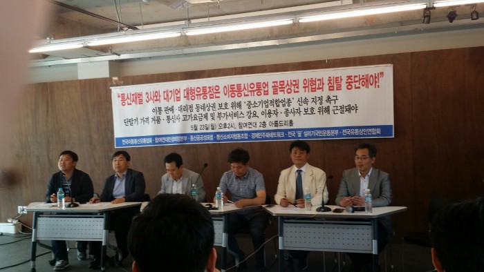 전국이동통신유통협회‧참여연대민생희망본부‧통신공공성포럼 등은 23일 참여연대 2층 아름드리홀에서 기자회견을 열고 이동통신 유통업을 중소기업 적합업종으로 신속히 지정해 보호할 것과 휴대폰 판매점 생존권 보장을 위한 정부 당국의 특단의 대책을 촉구했다.
