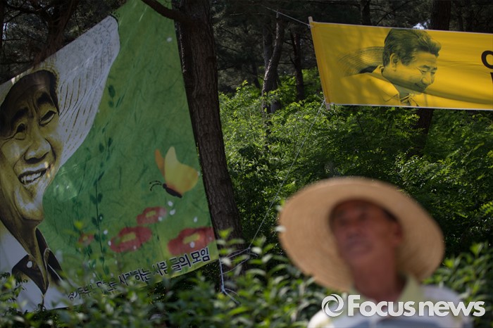 (김해=포커스뉴스) 23일 오후 경남 김해시 진영읍 봉하마을에서 열린 '故 노무현 전 대통령 서거 7주기 추도식'에서 故 노무현 전 대통령 묘역을 찾은 추도객들이 추도식에 참석하고 있다.