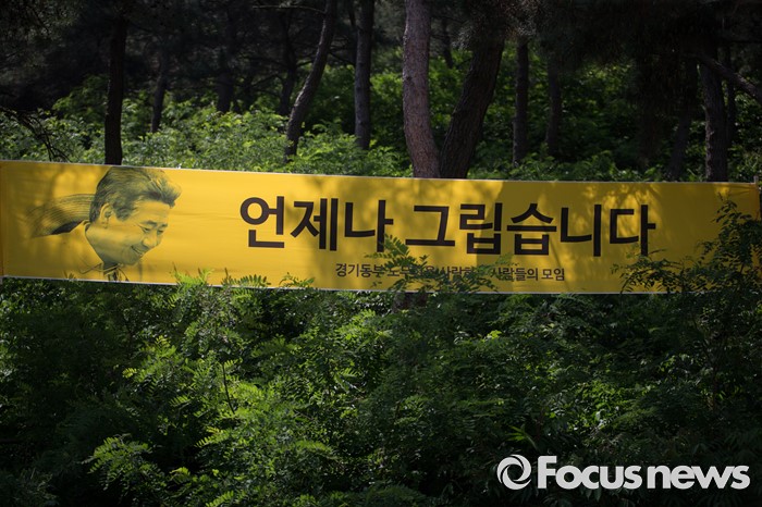 (김해=포커스뉴스)故 노무현 전 대통령 서거 7주기인 23일 오후 경남 김해시 진영읍 봉하마을에서 열린 '故 노무현 전 대통령 서거 7주기 추도식' 행사장 입구에 '언제나 그립습니다'라는 노란 플래카드가 붙어 있다.