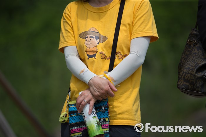 (김해=포커스뉴스)故 노무현 전 대통령 서거 7주기인 23일 오후 경남 김해시 진영읍 봉하마을에서 열린 '故 노무현 전 대통령 서거 7주기 추도식'에서 한 추도객이 노무현 전 대통령이 그려진 노란 티셔츠를 입고 있다.