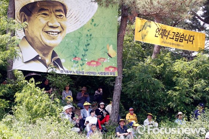 (김해=포커스뉴스) 故 노무현 전 대통령 서거 7주기 추도식이 엄수된 23일 오후 경남 김해 봉하마을에서 시민들이 그늘에 앉아 추도식을 지켜보고 있다.
