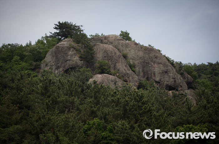 (김해=포커스뉴스)故 노무현 전 대통령 서거 7주기인 23일 오후 경남 김해시 진영읍 봉하마을에서 열린 '故 노무현 전 대통령 서거 7주기 추도식'에서 녹음 짙어진 부엉이 바위가 보이고 있다.
