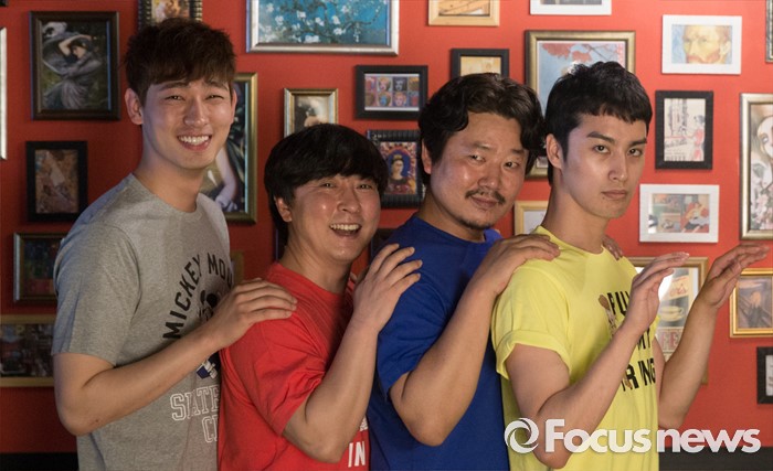 (서울-포커스뉴스) 23일 오후 서울 마포구의 한 카페에서 열린 '망원동 브라더스' 포스터 촬영현장에 참여한 배우 윤박(왼쪽부터), 노진원, 윤성원, 황규인이 포토타임을 갖고 있다.