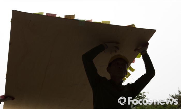 (서울=포커스뉴스) 23일 오후 서울 동작구 서울여성플라자 입구에서 서초구청 직원들이 강남역 묻지마 살인 피해자 추모 기록물들을 전시공간으로 옮기고 있다.