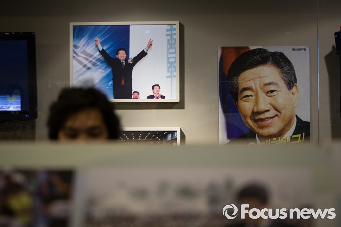 (김해=포커스뉴스)故 노무현 전 대통령 서거 7주기인 23일 오후 경남 김해시 진영읍 봉하마을 '추모의 집'에 노무현 전 대통령이 담긴 사진들이 걸려 있다.