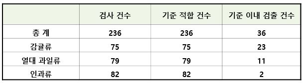 서울시보건환경연구원(이하 보건환경연구원)은 2014년 11월부터 지난해 12월까지 유통된 열대과일류와 과일류 14품목 236건에 대한 잔류 농약을 검사한 결과 전품목이 기준 이내라고 24일밝혔다.