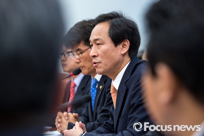 (서울=포커스뉴스) 우상호 더불어민주당 원내대표가 24일 오전 서울 여의도 국회의서 열린 원내대책회의에 참석해 모두발언 하고 있다.