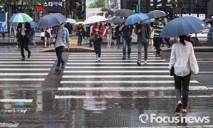 (서울=포커스뉴스) 전국이 흐리고 비가 내리는 24일 오전 서울 강남구 강남역 인근에서 시민들이 발걸음을 재촉하고 있다.