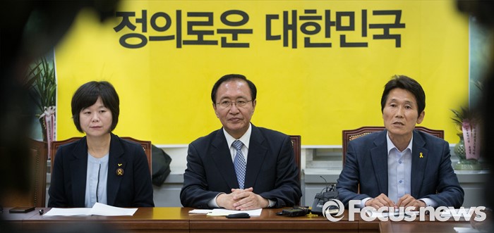 (서울=포커스뉴스) 노회찬(가운데) 정의당 원내대표가 참석한 가운데 윤소하(오른쪽) 정의당 당선인이 24일 오전 서울 여의도 국회에서 열린 당선자 총회에서 발언하고 있다.