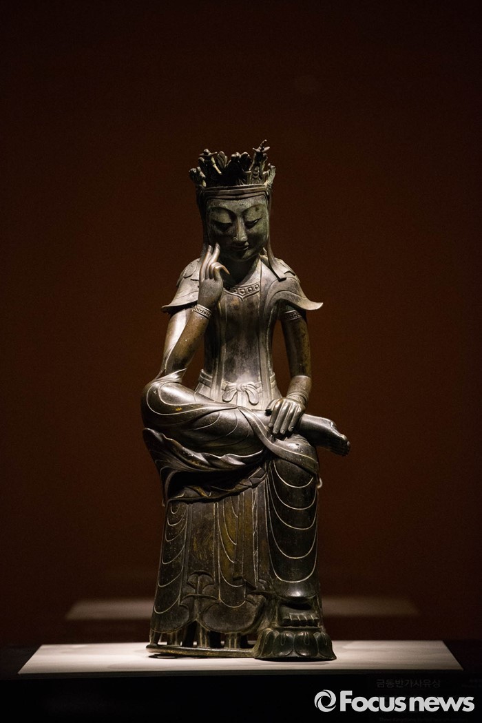 (서울=포커스뉴스) 24일 오전 서울 용산구 국립중앙박물관 기획전시실에서 열리고 있는 '한일국보 반가사유상의 만남' 전시에 우리나라 국보 제78호 금동반가사유상이 전시돼있다.