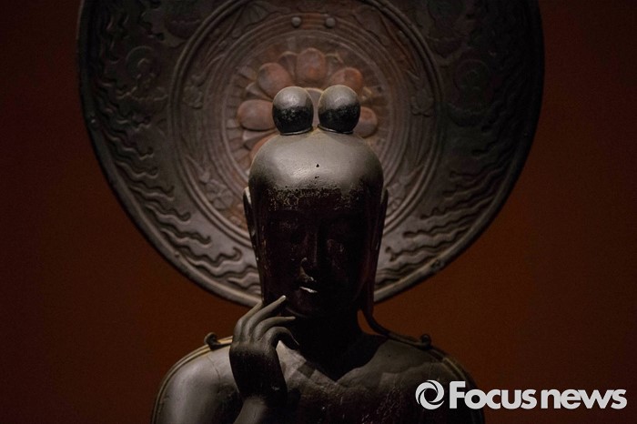 (서울=포커스뉴스) 24일 오전 서울 용산구 국립중앙박물관 기획전시실에서 열리고 있는 '한일국보 반가사유상의 만남' 전시에 일본의 국보 나라현 주구사 목조반가사유상이 전시돼있다.