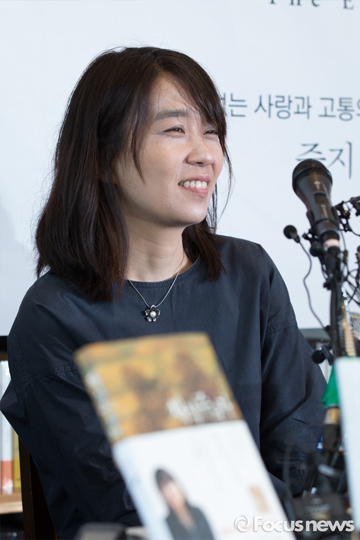 (서울=포커스뉴스) 소설' 채식주의자'로 세계 3대 문학상인 맨부커상을 수상한 한강이 24일 오전 서울 마포구 카페 꼼마에서 열린 신작소설 '흰' 출간 기자간담회에서 질문에 답하고 있다.