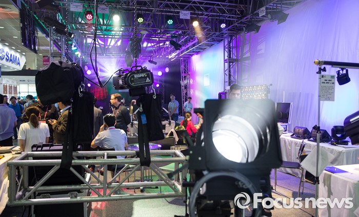 (서울=포커스뉴스) 24일 오전 서울 강남구 코엑스에서 열린 '제26회 국제 방송·음향·조명기기 전시회'를 찾은 관람객들이 조명들을 살펴보고 있다.