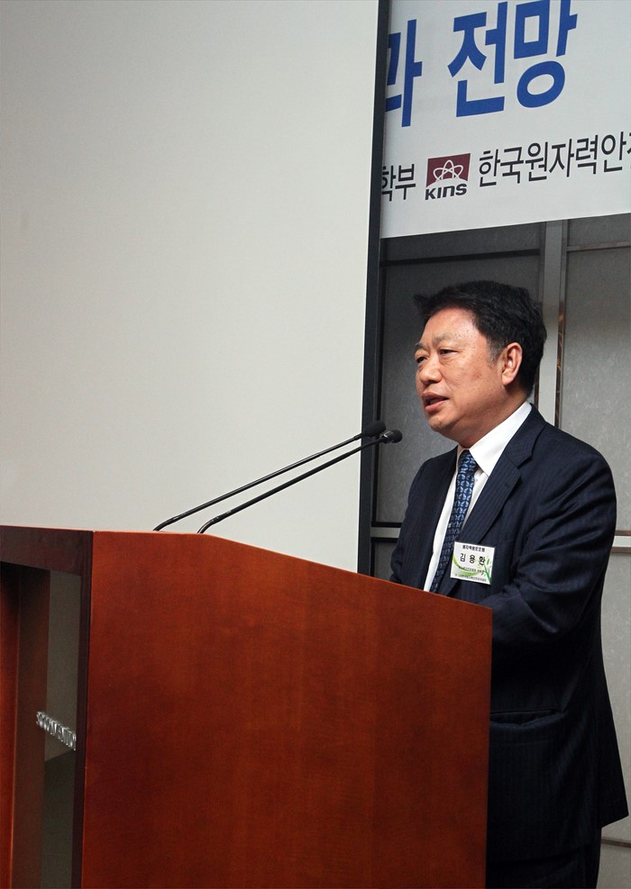 (서울=포커스뉴스) 김용환 원자력안전위원회 위원장이 24일 서울 과학기술연합회에서 열린 제 45차 원자력원로포럼에 참석해 인사말을 하고 있다. <사진제공=원자력안전위원회>