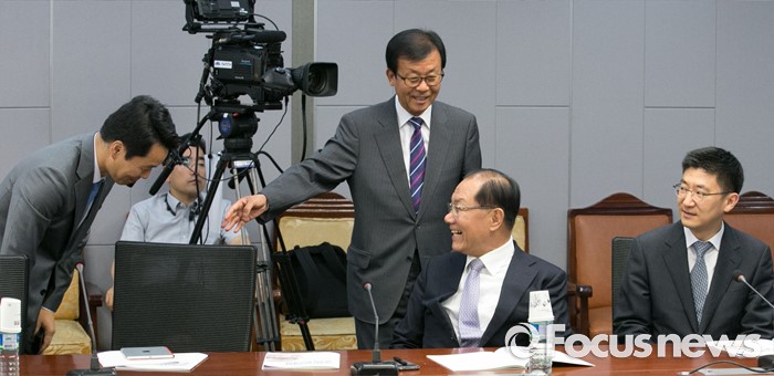 (서울=포커스뉴스) 24일 오후 서울 여의도 국회 의원회관에서 열린 국회선진화법 평가와 발전 방안 토론회에 참석한 여야 의원들이 대화하고 있다. 왼쪽부터 김병관 더불어민주당 당선인, 원혜영 의원, 황우여, 김세연 새누리당 의원.