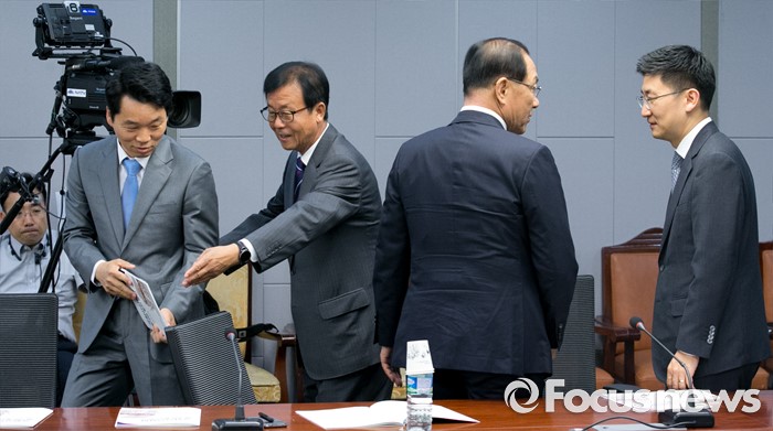 (서울=포커스뉴스) 24일 오후 서울 여의도 국회 의원회관에서 열린 국회선진화법 평가와 발전 방안 토론회에 참석한 여야 의원들이 대화하고 있다. 왼쪽부터 김병관 더불어민주당 당선인, 원혜영 의원, 황우여, 김세연 새누리당 의원.