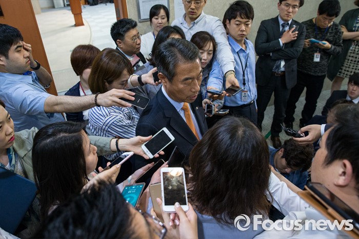 (서울=포커스뉴스) 정종섭 새누리당 당선자가 24일 오후 서울 여의도 국회에서 취재진에게 상시 청문회를 가능하도록 한 국회법 개정안이 행정부 침해 위헌소지가 있다는 설명을 하고 있다.