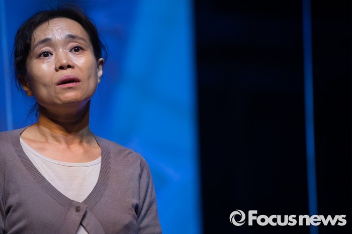 (서울=포커스뉴스) 24일 오후 서울 종로구 CJ아지트 대학로점에서 열린 연극 '크레센도 궁전' 프레스콜에 참여한 배우 강애심이 주요장면을 시연하고 있다.