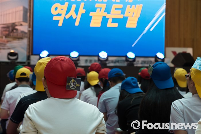 (서울=포커스뉴스) 24일 오후 서울 강북구 신일중학교 체육관에서 열린 근현대사기념관 개관 기념 '역사 골든벨'에 참석한 학생들이 본선 골든벨 퀴즈를 풀고 있다.