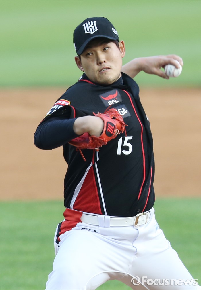 (서울=포커스뉴스) 24일 서울 잠실구장에서 열린 2016프로야구 kt-두산 경기에서 1회말 kt 선발투수 정대현이 투구하고 있다.