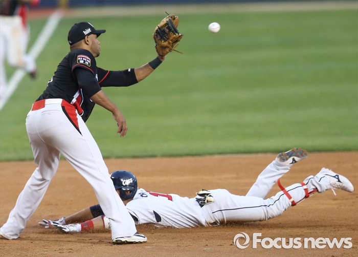 △ 3루에서 세이프되는 두산 허경민