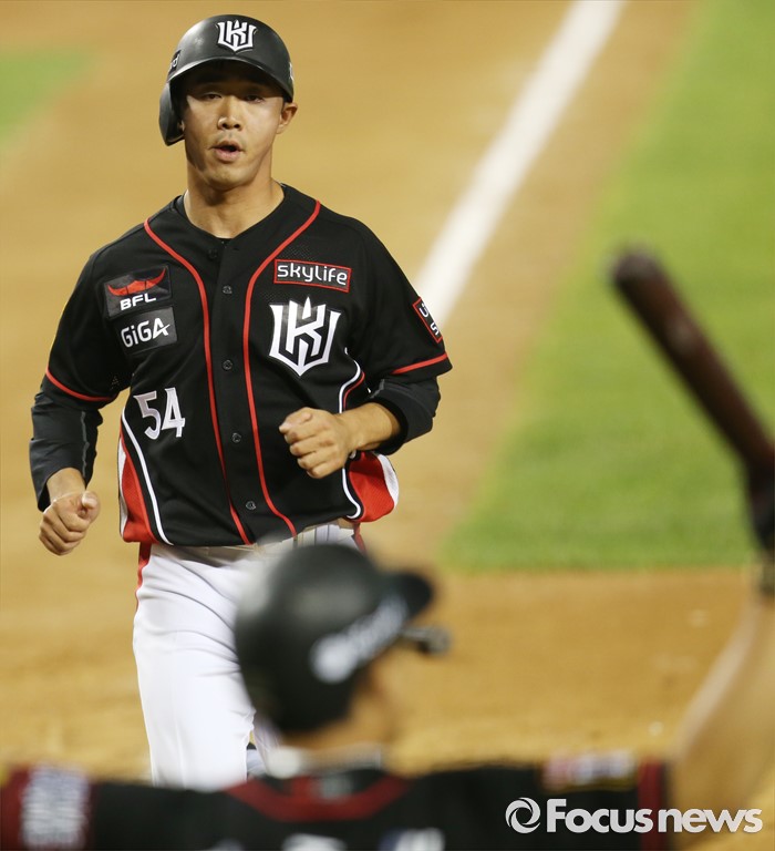 (서울=포커스뉴스) 24일 서울 잠실구장에서 열린 2016프로야구 kt-두산 경기 6회초 1사 2루에서 kt 박기혁의 좌전 안타때 2루주자 전민수가 홈인하고 있다.
