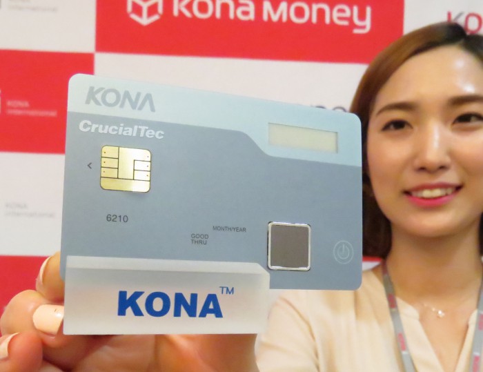 코나아이와 크루셜텍이 세계 최초로 상용화 한 전자 지문인식 스마트카드는 일반 스마트카드에 지문인식 센서만 추가하는 형태였던 기존 타사의 개발 콘셉트와 달리 배터리를 내장하고 디스플레이를 장착해 사용 편의성을 높였다. 카드 두께도 일반 스마트카드와 동일해 휴대 편의성도 높다.