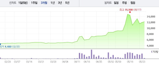 4월 초(4975원) 주가와 비교했을 때 149% 상승하는 등 보성파워텍의 주가는 꾸준히 상승곡선을 그려왔다. 23일 13.21%의 낙폭을 기록하면서 하락 흐름으로 돌아선 것 아니냐는 의견이 나왔지만 2거래일 연속 상승세로 우려에서 벗어났다.