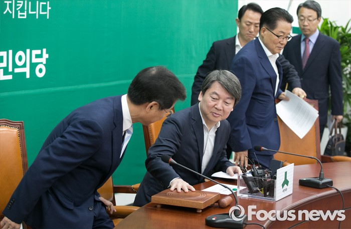 (서울=포커스뉴스) 25일 오전 서울 여의도 국회에서 열린 국민의당 최고위원회의에 안철수(가운데) 상임공동대표와 천정배(왼쪽) 공동대표, 박지원 원내대표가 참석하고 있다.