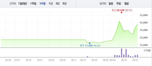 현대시멘트는 25일 오전 9시46분 현재 전일 대비 11.05%(4250원) 상승한 4만2700원에 거래되고 있다. 전 거래일에도 현대시멘트는 거래 제한폭인 29.90%까지 치솟았다.