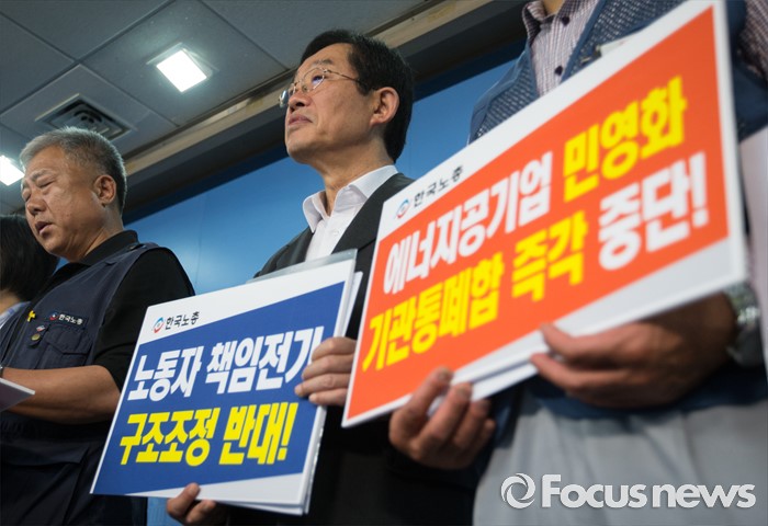 (서울=포커스뉴스) 이용득(가운데) 더불어민주당 당선자와 김동만(왼쪽) 한국노총 위원장이 25일 오전 서울 여의도 국회에서'구조조정 해법 마련 국회 내 사회적 대화 촉구 기자회견'을 하고 있다.