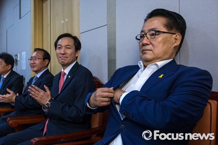 (서울=포커스뉴스) 25일 오전 서울 여의도 국회의원회관에서 열린 '공영언론 지배구조 개선 위한 20대 국회의 역할과 과제 토론회'에 야3당 원내대표가 참석하고 있다. 오른쪽부터 박지원 국민의당 원내대표. 우상호 더불어민주당 원내대표, 노회찬 정의당 원내대표.