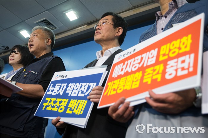 (서울=포커스뉴스) 이용득(오른쪽 두번째) 더불어민주당 당선자와 김동만(왼쪽 두번째) 한국노총 위원장이 25일 오전 서울 여의도 국회에서'구조조정 해법 마련 국회 내 사회적 대화 촉구 기자회견'을 하고 있다.