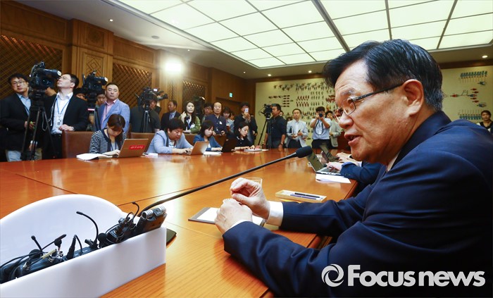 (서울=포커스뉴스) 정의화 국회의장이 25일 오전 서울 여의도 국회에서 퇴임 기자회견을 마친 뒤 취재진과 기자간담회를 하고 있다. 오는 29일 임기 종료를 앞둔 정 의장은 이날 회견에서 19대 국회 후반기 국회의장직을 수행하며 느낀 소감 등을 전했다.