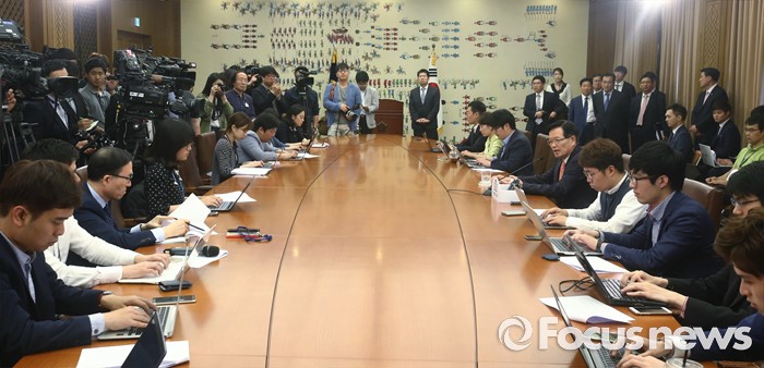(서울=포커스뉴스) 정의화 국회의장이 25일 오전 서울 여의도 국회에서 퇴임 기자회견을 마친 뒤 취재진과 기자간담회를 하고 있다. 오는 29일 임기 종료를 앞둔 정 의장은 이날 회견에서 19대 국회 후반기 국회의장직을 수행하며 느낀 소감 등을 전했다.