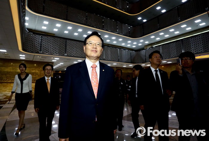 (서울=포커스뉴스) 정의화 국회의장이 25일 오전 서울 여의도 국회에서 퇴임 기자회견을 마친 뒤 이동하고 있다. 오는 29일 임기 종료를 앞둔 정 의장은 이날 회견에서 19대 국회 후반기 국회의장직을 수행하며 느낀 소감 등을 전했다.