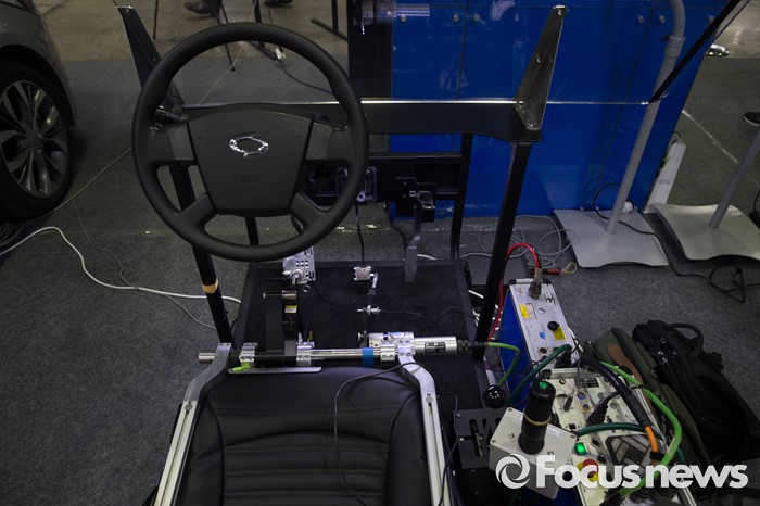 (서울=포커스뉴스) 25일 오전 서울 강남구 코엑스에서 열린 국토교통부 주최'2016 국토교통기술대전'에 전시된 자율주행 자동차 내부 구조물.