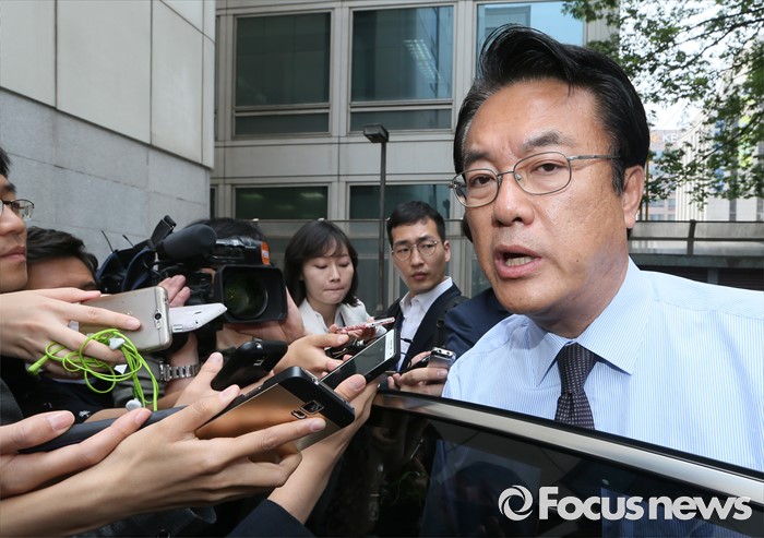 (서울=포커스뉴스) 정진석 새누리당 원내대표가 25일 오전 서울 여의도 당사 앞에서 경비중대를 격려 방문한 뒤 취재진 질문을 받으며 이동하고 있다.