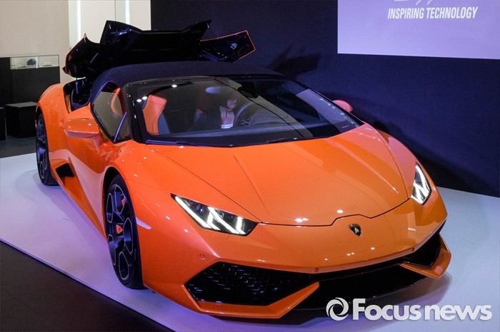 (서울=포커스뉴스) 25일 오전 서울 강남구 람보르기니 서울에서 열린 람보르기니 우라칸 LP 610-4 스파이더 출시 행사에서 업체 관계자들이 차량을 선보이고 있다.